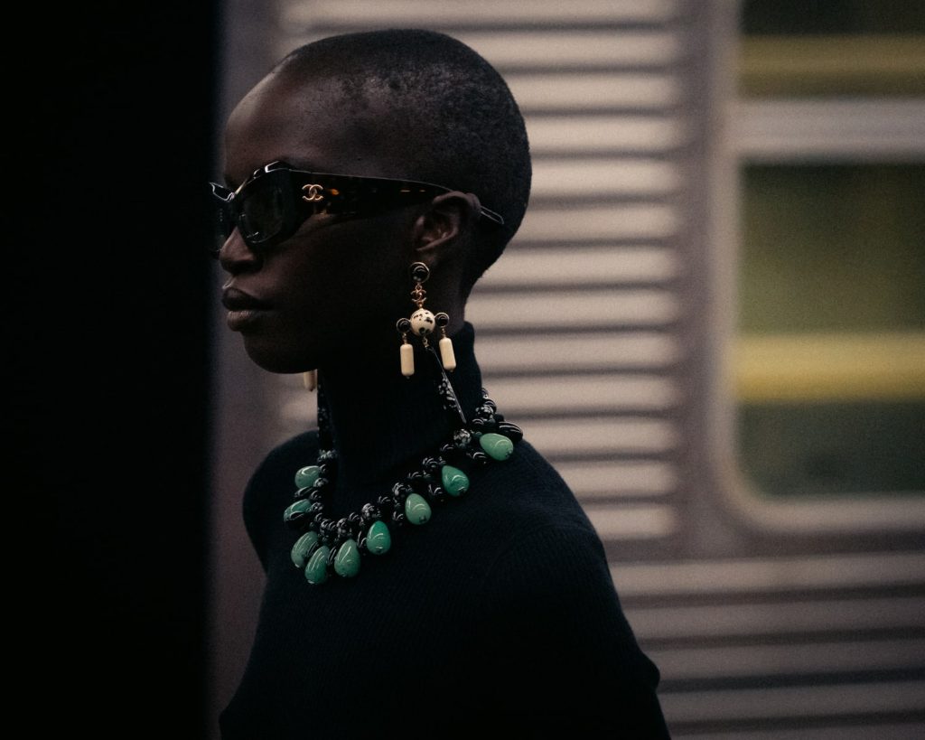 Après plusieurs saisons placées sous le signe de la retenue, la mode réoccupe le territoire. Les silhouettes s’élargissent, les volumes s’affirment, l’allure gagne en présence. Chez Balmain, les épaules structurées redessinent la posture. Chez Schiaparelli ou Chanel, les bijoux XXL deviennent des pièces d’affirmation. Maat, jeune maison sénégalaise, défend une mode pudique accompagnée d’accessoires volumineux, comme cette collerette opulente qui capte le regard.