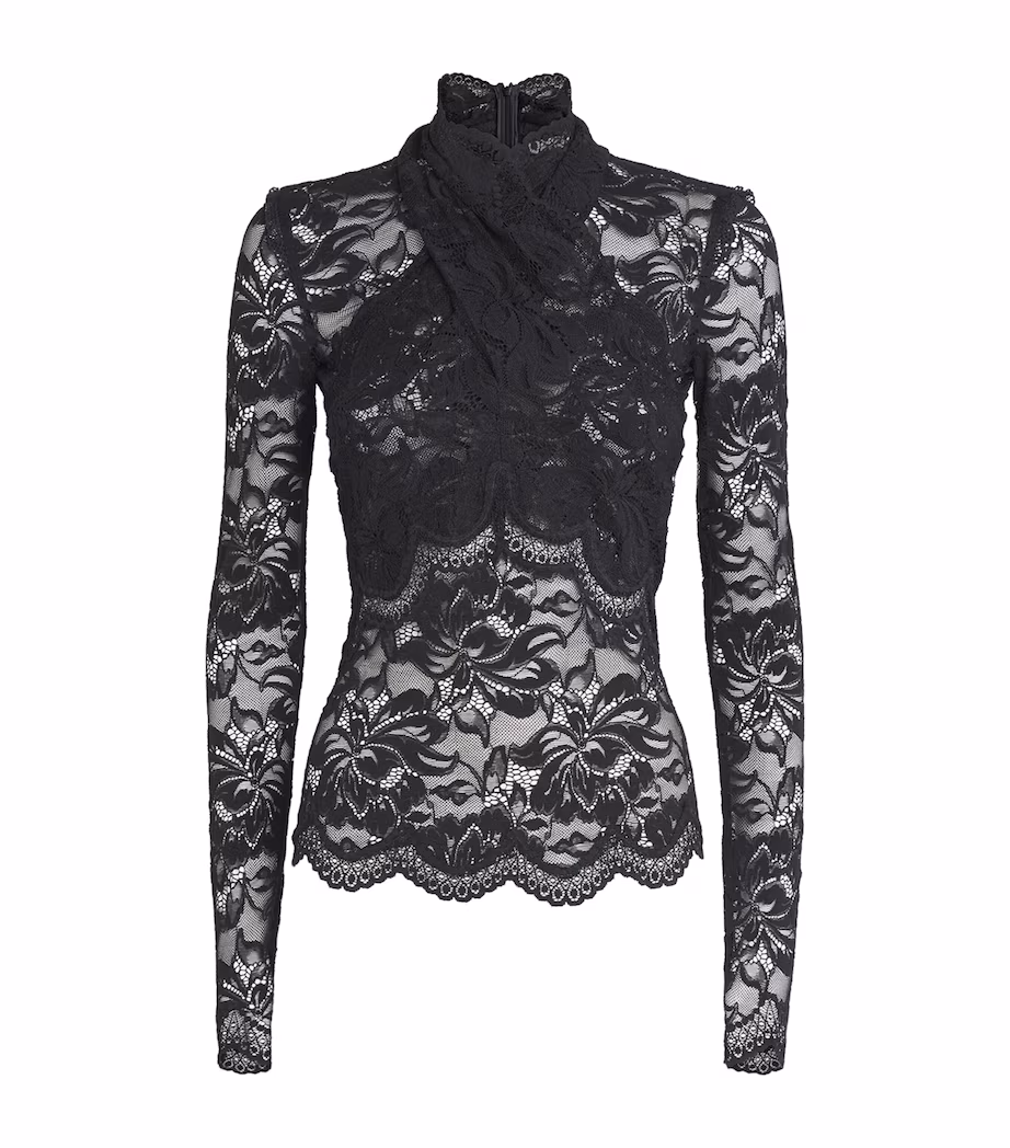 La dentelle gagne en caractère lorsqu’elle se confronte à des pièces structurées. Chez Saint Laurent, elle se porte sous des vestes strictes, créant une tension entre rigueur et sensualité. Givenchy explorait déjà ce contraste dans les années 1990. L’équilibre actuel se veut plus précis. Même démarche chez Stella McCartney, où la dentelle évite tout romantisme décoratif.
