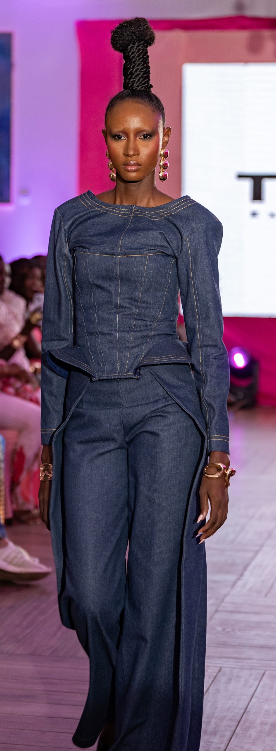 Le jean reste une constante, mais il cherche à se renouveler. Il se structure, joue avec les volumes chez Acne Studios, se transforme en bustier presque couture chez Jacquemus et Three Di Excès d’Afrique, le duo composé de Thierno Ngom et de Dior Diagne Dioum, qui enjaille Dakar.